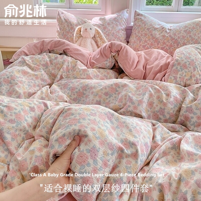 A类母婴级双层纱四件套床笠款